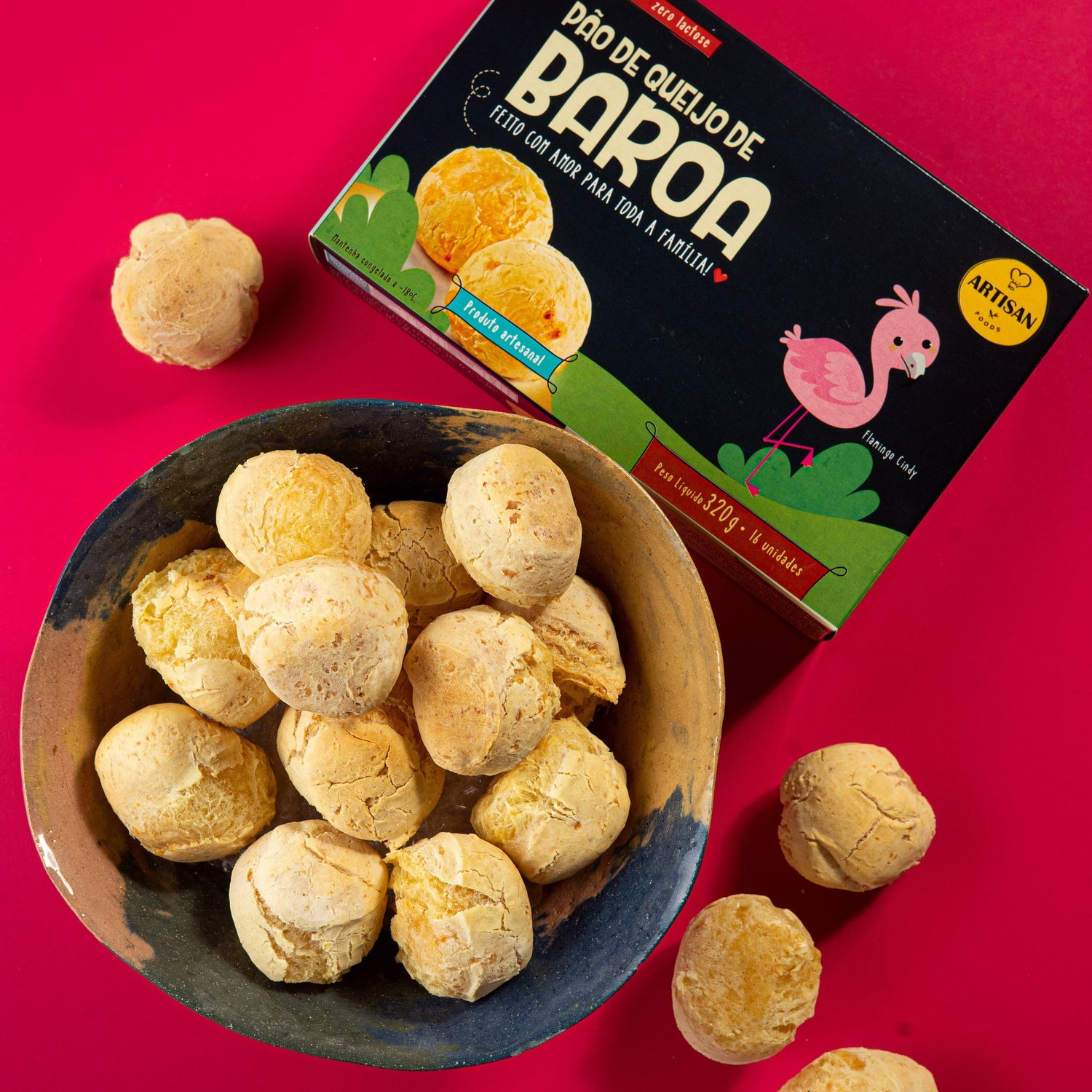 Batata baroa, polvilho azedo, ovo pasteurizado, mussarela sem lactose, extrato de inhame, óleo de girassol, água, sal rosa.